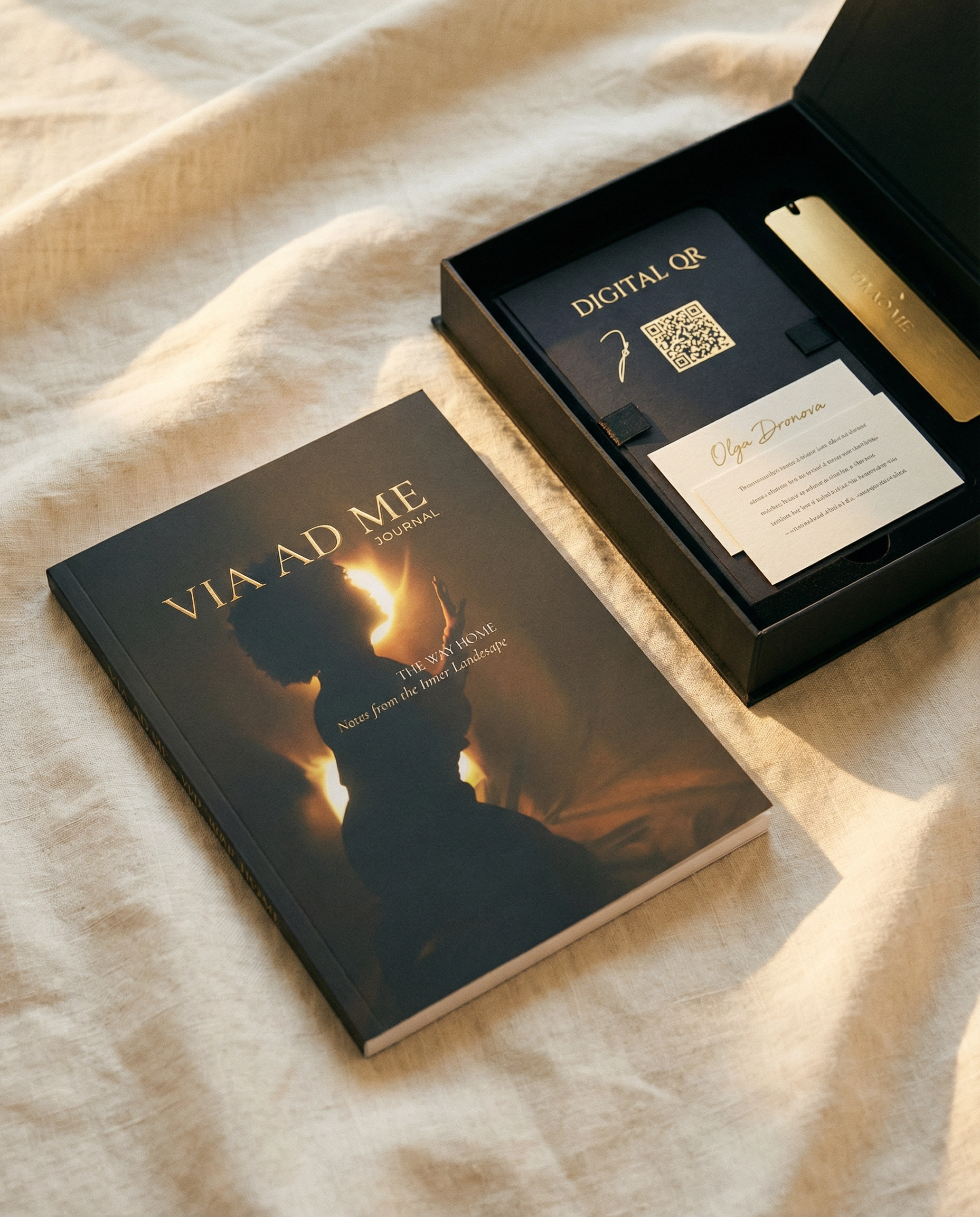 VIA AD ME is not a productivity tool or a self-help workbook. It is a beautifully crafted vessel for your deepest questions, your quiet revelations, and the words you have never spoken aloud. Available in your language.